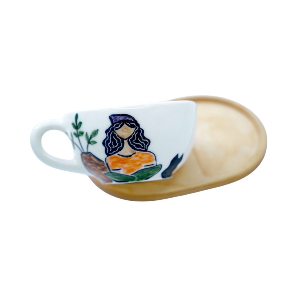 لته خوری سرامیکی دستساز بهمراه پیش دستی چوبی طرح حال خوش