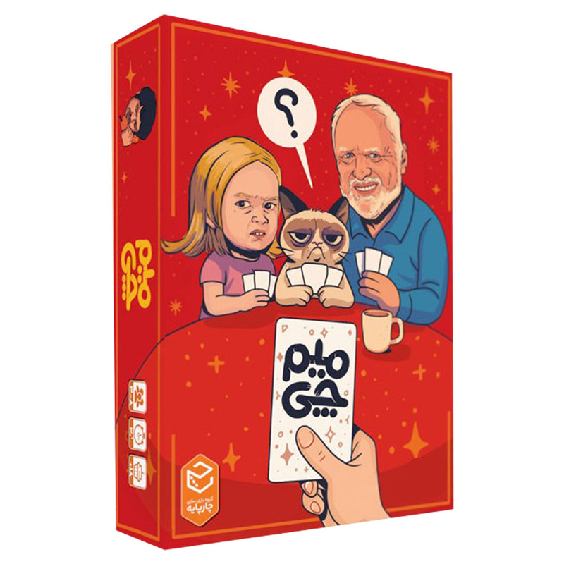 | خلاصه روش بازی | در میم چی، بازیکنان باید با استفاده از کارتهای موجود، ترکیبی از یک تصویر (میم) و یک جملهی طنز (کپشن) بسازند که خندهدارترین و بانمکترین حالت ممکن باشه.قاضی هر دور بهترین ترکیب رو انتخاب میکنه و بازیکنی که کارتش انتخاب شده باشه، امتیاز میگیره.در پایان بازی، کسی که بیشترین امتیاز رو جمع کرده باشه، برندهی نهایی این میمبازی خفن خواهد بود! |