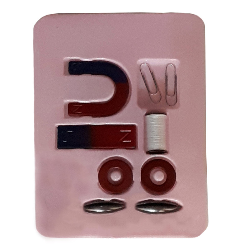 | اقلام همراه | 1 آهنربای نعلیشکل، 1 آهنربای مستطیل، 2 آهنربای رینگی، 2 آهنربای بیضی شکل، 2 سنجاق و همچنین 1 قرقره نخ |
