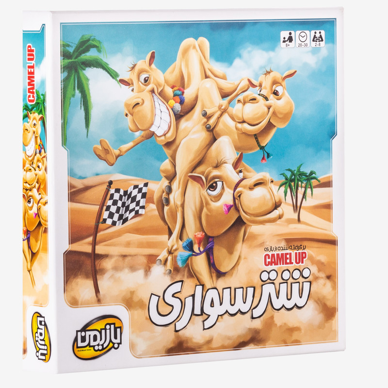 بازی فکری شتر سواری ، نسخه ایرانی بازی جذاب و هیجان انگیز camel up است، مسابقه بزرگ شتر سواری روی صفحه ی صحرای آفریقا با حس ششم و قدرت پیش بینی خود روی برنده و بازنده ی بازی شرط بندی کنید . ۵ شتر برای قهرمانی مسابقه میدهند و بازیکنان باید سعی کنند پیشاز پایان مسابقه و پیشاز رُقبای خود، حدس بزنند و بر اساسِ حدسِ درستشان امتیاز بگیرند. در هر نوبت از این بازی، بازیکنان، امکانات مختلفی را پیشِ رو دارند: میتوانند تاس بریزند و شترها را روی صفحه (در مسیر مسابقه) به جلو حرکت دهند. میتوانند با استفاده از کاشیهای ویژهی «1+» یا «1-» شترها را یک خانه به جلو یا یک خانه به عقب بفرستند. نحوهی نشستن تاسها (که حرکت شترها را تعیین میکنند) هیجان بازی را بالا و پایین میکند: یک تاس خوب میتواند سرنوشت یک شتر را تغییر بدهد و او را ناگهانی به مقام قهرمانی برساند!